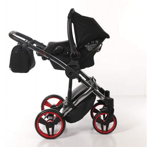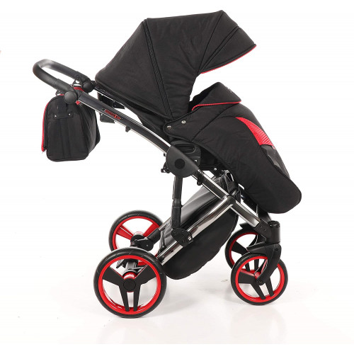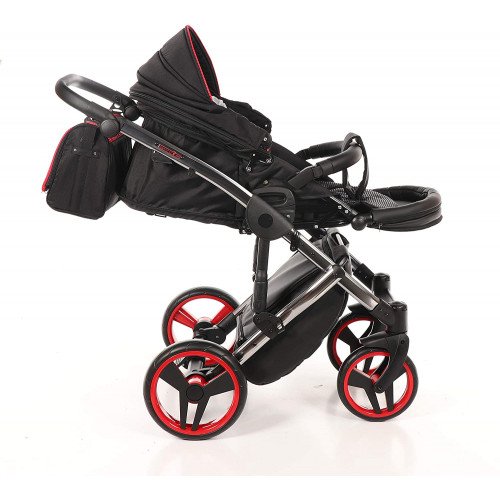 Nuestro cochecito Junama Diamond S-Line es para todos aquellos que buscan algo especial Nuestros cochecitos son el resultado de la innovación técnica y la experiencia de madres reales . Detalles técnicos ? _ Lujo en su forma más hermosa Neumáticos giratorios con función de bloqueo ? Sistema de clic fácil para los accesorios ? Freno central de seguridad ? Plegable extra pequeño ? Suspensión especial con ajuste de dureza ? Elaborado procesamiento ? Bolsa de pañales, cubierta de lluvia y protección contra insectos Gratis