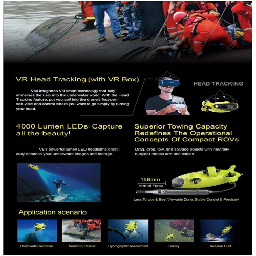 VGVCTX 100m Submarino Mini Rov Robot Fish Finder Drone 4K Cámara RC FPV Drone Motor 6 Axis VR Drone de Pesca con Brazo