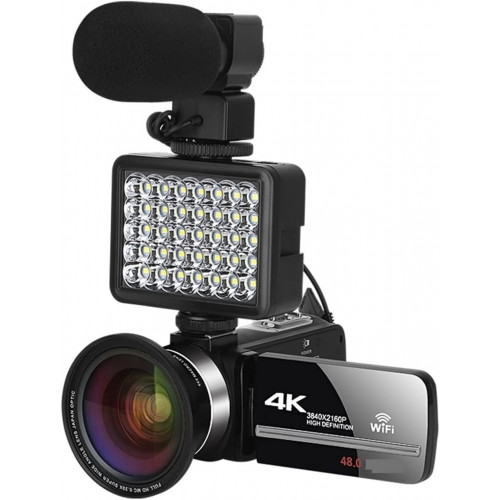 Videocámara con cámara de vídeo 2 PCS 4K Videocámara WIFI Cámara de video digital for Streaming Vlog Recorder 18X Estabilizador de cámara web de lapso de tiempo Cámara de vlogging con zoom digital.