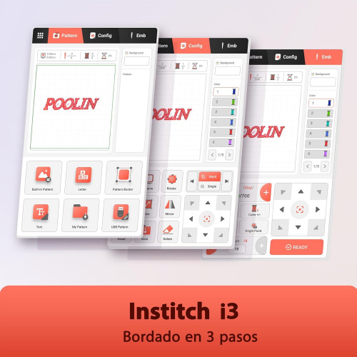 • 【Sistema informático Institch i3】Sistema operativo informático sencillo, desde la selección de patrones hasta la edición, hasta las letras de bordado y combinaciones de patrones en múltiples colores. Acorta tu curva de aprendizaje.
