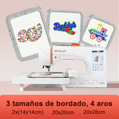 POOLIN EOC06 Máquina de Bordar, 20x28 cm Área de Bordado,Incluye 4 bastidores,Pantalla Táctil LCD de Computadora de 18 cm, Equipada con Hilo, Estabilizador, Canilla,Principiantes Para Uso Doméstic.