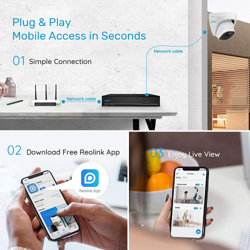 - Sistema PoE Plug and Play: Una simple conexión PoE facilita la configuración e instalación del sistema de cámaras de seguridad de su casa. Con un solo cable de red, que se extiende hasta 330 pies, los usuarios pueden disfrutar de una cobertura de seguridad sin problemas en toda su casa. Esto es perfecto tanto para usuarios de cámaras principiantes como para entusiastas del bricolaje