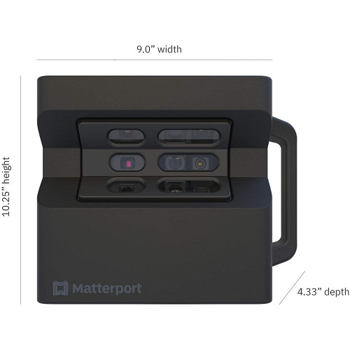 - EE UU País de fabricación Batería de ion de litio Batería 10 puntos por grado (3600 puntos en el ecuador, 1800 puntos en el meridiano, alrededor de 4 millones de puntos por panorámica) Resolución de profundidad Automático Registro de datos 3D 15 pies (4,5 m) rango máximo Rango Sensor 3D de luz estructurada (infraroja) Sensor 3D 8092px x 4552px Exportación de imágenes 4K Full Glass Lente 2K cuadrados por cara “Skybox” Resolución de captura 57 segundos Tiempo de encendido 4,5 horas Tiempo de carga Alrededor de 8 horas (uso continuo) con dos paquetes de 77 Whr instaladas permanentemente. 8 celdas por batería, 9,6 Whr por celda. Capacidad de batería 32º a 104º F (0 a 40° C) Temperatura de almacenamiento 50º a 90º F (10 a 32° C) Temperatura de operación 6.5 libras (3.0 kg) Peso 9,00″ altura / 10,25″ ancho / 4,38″ largo (229 x 260 x 111 mm) Tamaño