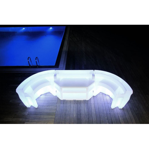 La barra «Zanzibar» del fabricante de muebles de diseño italiano Modum es un verdadero punto de atracción para tu fiesta. La barra está iluminada con LED y crea una atmósfera impresionante. Apto para uso en interiores y exteriores. También es posible combinar varios de estos elementos y crear una gran barra. Para ello se pueden combinar elementos de las series "Zanzibar" y "Pemba".