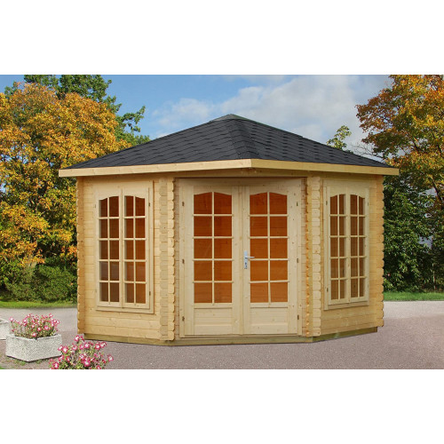 - Caseta de madera hecha de abeto nórdico con 5 años de garantía y