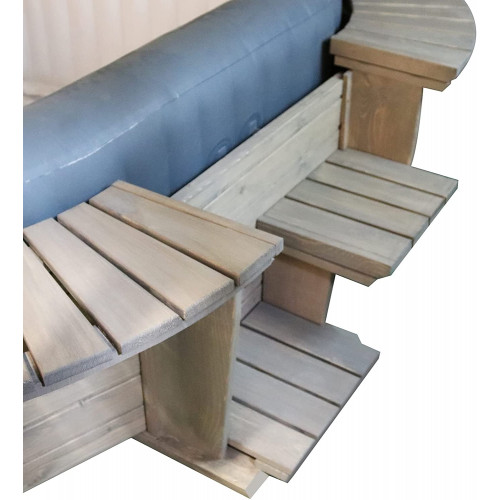 - Spa hinchable con panelado de madera de pino en tono gris claro formado por el modelo Lay-Z-Spa Hawaii Hydrojet Pro para hasta 6 personas