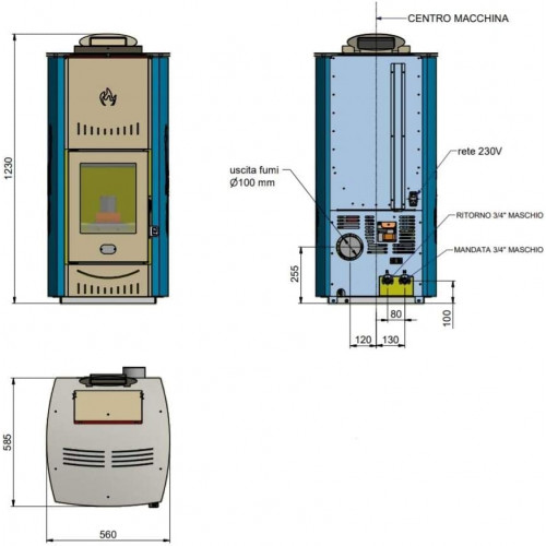 Producto 100% italiano. 24 meses de garantía. Certificado de 4 estrellas según los requisitos de emisiones y rendimiento de la certificación Aire Limpio. Dimensiones: 123, L.56, P. 61. 5 niveles de potencia, programable con 3 encendidos y apagados diarios. Autonomía máxima: 24 h. Consumo máximo de pellets: 4,8 kg/h. Ruido: EN 15036-1: 34 dB. Posible deración fiscal al al 50% (Decreto 83/2012). Estufa de pellets especialmente adecuada para calentar grandes ambientes. La calidad de los materiales de construcción y los altos valores de rendimiento térmico lo convierten en una estufa ideal para todo tipo de espacios. Nota: salida de humos de 80 mm. Datos técnicos: estufa: superficie calefactable: 160 m² (mod. 25 kW. Potencia al agua: 19 kW (mod. 22 kW), 21 kW (mod. 25 kW. Dimensiones: 123, L.56, P. 61. Eficiencia: 87,55 / 92,9%. Programación: diaria/semanal. Potencia térmica máxima introducida: 22 kW (mod. 22 kW), 25 kW (mod. 25 kW. Potencia térmica mínima introducida: 4,8 kW (mod. 22 kW), 5,8 kW (mod. 25 kW. Rendimiento de combustión máximo potencia: 87,55 % (mod. 22 kW), 87,55% (mod. 25 kW. Rendimiento de combustión mínima: potencia: 92,9% (mod. 22 kW), 94% (mod. 25 kW. Capacidad del depósito: 32 kg. Autonomía máxima: 24 h (mod. 22 kW), 23 h (mod. 25 kW. Consumo de pellets máximo: 4,8 kg/h (mod. 22 kw), 5 kg/h (modelo 25 kw) Consumo de pellets mínimo: 1,2 kg/h (mod. 22 kw), 1,4 kg/h (mod. 25 kw) Peso en vacío: 180 kg Dimensión salida de humos: 80 mm Absorción eléctrica: 150 / 360 W Temperatura de humos máx.: 135 °C Corriente del tubo de humos: 12 Pa Masa de los gases emitidos a la potencia máxima: 24 g/s. Masa de los gases emitidos a la potencia mínima: 1111 g/s. Emisión de CO2 a la potencia máxima: 6,39% Emisión de CO2 a potencia mínima: 5,43% Emisión de CO a potencia máxima (13% O2): 386,1 PPM Emisión de CO a potencia mínima (13% O2): 173,3 ppm Art. 15 a emisiones de CO potencia máxima: 328 mg/MJ Art. 15 a emisiones de CO potencia mínima: 147 mg/MJ Art. 15° emisiones de no potencia máxima: 54 mg/MJ.