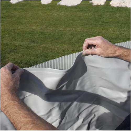 Kit completo: Incluye liner gris (40/100), depuradora de arena 6 m3/h, escalera de seguridad y tapiz protector