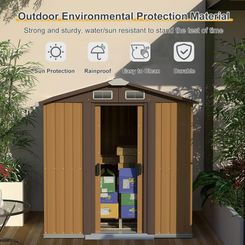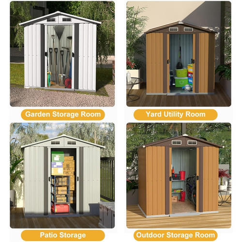 • 【Cobertizo de almacenamiento multifuncional para exteriores】El cobertizo de metal se puede utilizar para muchos propósitos. La gran capacidad es perfecta para exteriores, como el patio trasero, el jardín, el patio, el césped para almacenar sus suministros de jardinería y paisajismo como cortadoras de césped, herramientas eléctricas o bicicletas y otros artículos. También se puede usar como una casa para mascotas, las mascotas pueden obtener suficiente aire y mantenerse calientes incluso con mal