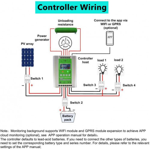 - 1 controlador de carga MPPT híbrido de viento solar de 12/24 V.