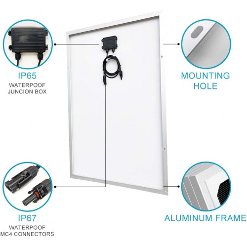 • Paneles solares monocristalinos de 100 W, soportan altas cargas de viento y nieve, marco de aluminio resistente a la corrosión, lo que permite que los paneles duren décadas. Compatible con diferentes sistemas de montaje como soportes Z, soportes de poste e inclinación