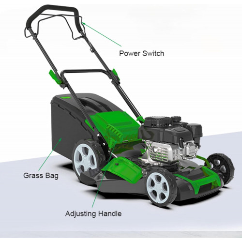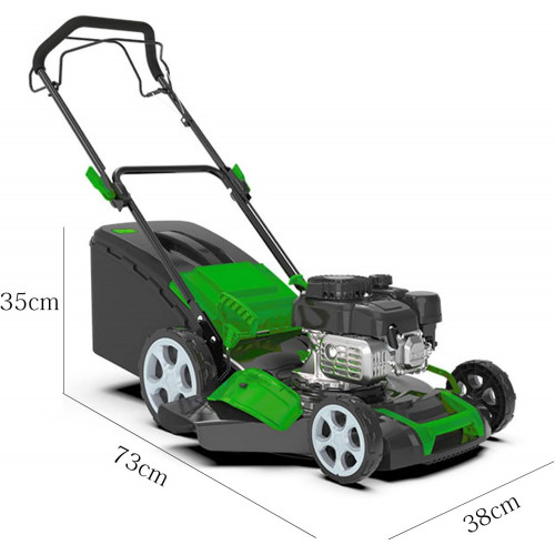 • [Flexible y ágil]: Este cortacésped a gasolina tiene ruedas traseras de 25 cm para una fácil maniobrabilidad, además de una bolsa de gran capacidad de 65 L para recoger recortes y un diseño que ahorra mano de obra y que le ayudará a trabajar de forma más eficiente.