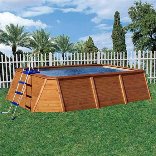 • Piscina desmontable tubular con estrucura de madera panelada que lo cubre y le aporta la estética que buscas para tu jardín