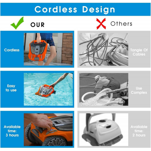 Aspiradora para Piscinas, Limpieza de Piscina Robot Aspirador Limpiador eléctrico enterrado Automático Inalámbrico Limpiador de Piscina robótico for Piscina para Piscinas Planas elevadas o enterradas