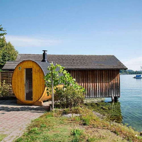Descubre nuestra sauna al aire libre en forma de barril, un diseño tradicional finlandés que encarna la esencia misma de la relajación nórdica. Diseñado para adaptarse a espacios atípicos y funcionar sin fuente de alimentación, esta sauna promete un escape perfecto de la vida cotidiana, proporcionando una experiencia auténtica con facilidad.