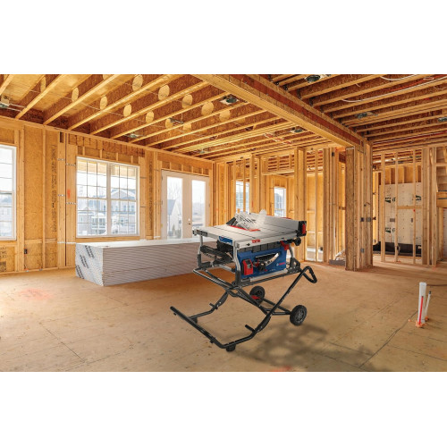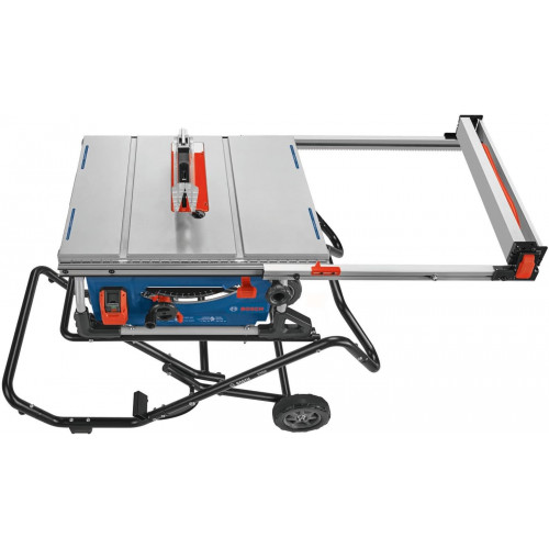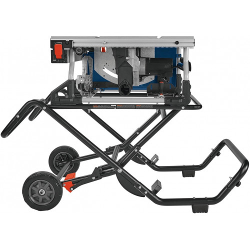 BOSCH GTS15-10 Sierra de mesa portátil de 10 pulgadas con soporte de ruedas de elevación de gravedad, capacidad de rasgado de 15 amperios, 32-1/8 pulgadas