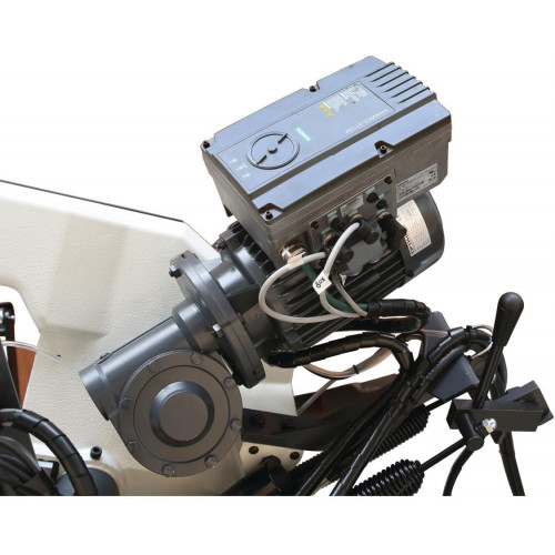 Con accionamiento Siemens Inventer para velocidad de cinta de sierra regulable.