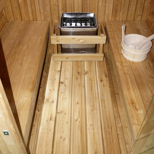• Sauna finlandesa, caracterizada por su particular forma de barril.