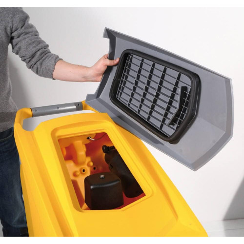 30 litros de capacidad, máxima facilidad de uso y un sistema de soluciones integradas hacen que sea un punto de referencia en su segmento de mercado. Maniobrabilidad máxima, gracias a su tamaño compacto y la “distancia corta entre ejes” de ruedas pivotantes, que facilitan los movimientos del operador al mismo tiempo que se garantiza el máximo control.