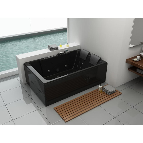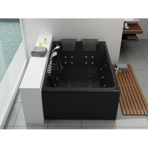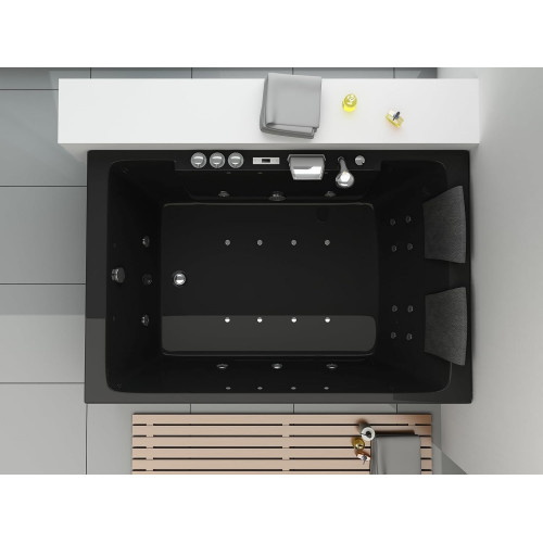 Whirlpool Torino 180 x 120 cm, negro, bañera de hidromasaje interior para 2 personas con 14 hidrojets y 8 airjets, calefacción, luz de color LED, sistema de sonido bluetooth y cascada