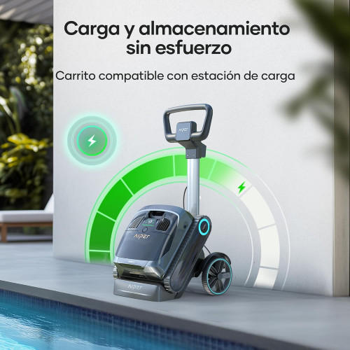 - Transporte Sencillo: Con el carrito de Aiper, el robot de piscina se transporta fácilmente. Su diseño ergonómico facilita el transporte y reduce el esfuerzo