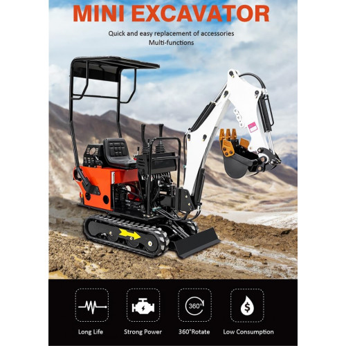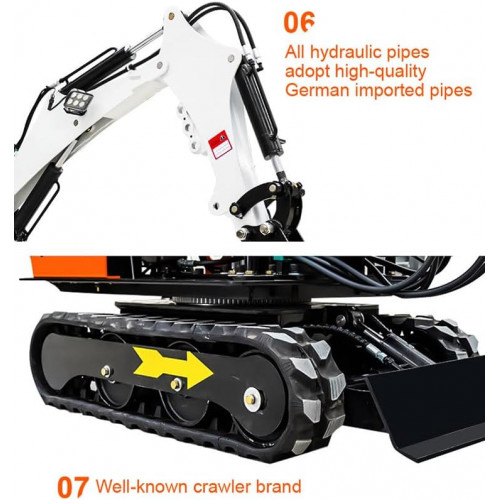 • Potente rendimiento: la excavadora de motor diésel ofrece una fuerte fuerza de excavación a pesar de su tamaño.