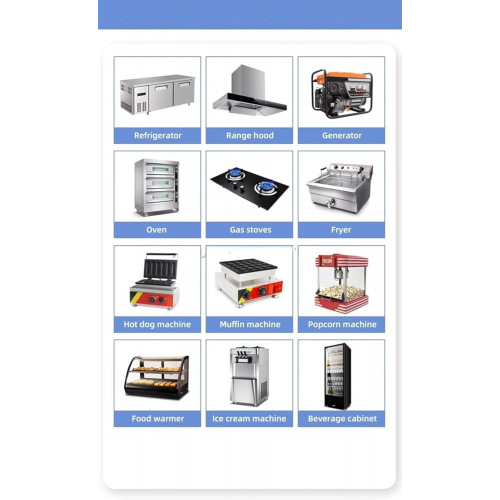 • Ideal para eventos y ventas diarias: sirve comida rápida en estacionamientos, campus, calles de la ciudad o eventos emergentes.