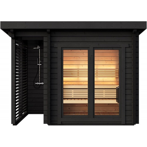 Saunamo Sauna Exterior Deluxe Plus, Diseñada y Fabricada en los países nórdicos, para 4 pessoas, 3410x1940 mm