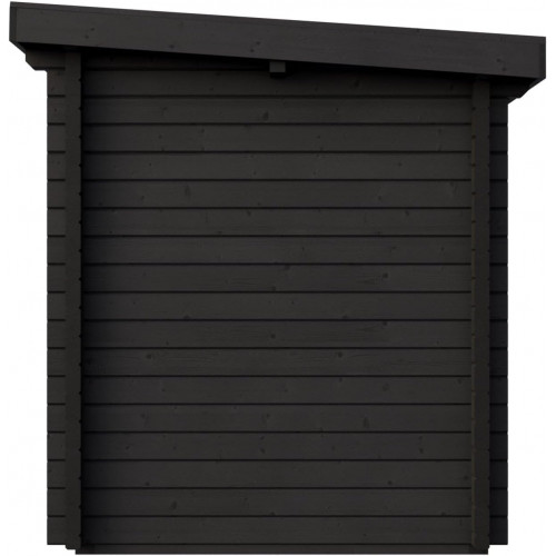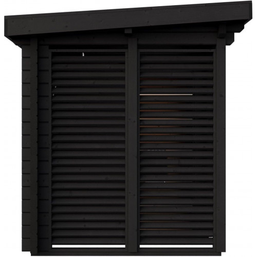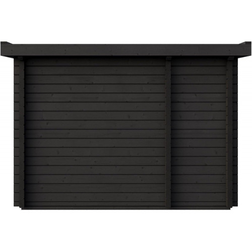 Dimensiones: Ancho: 3410 mm Profundidad: 1940 mm Altura frontal: 2405 mm Altura trasera: 2275 mm Área total: 6,62 m² Área de la sala de sauna: 3,6 m².