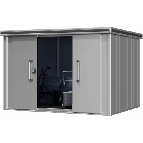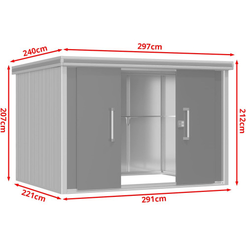 GFP Caseta de jardín metálica 291x221x212 cm Incl. Puerta corredera en Gris Cobertizo Impermeabl.