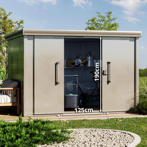 - PRÁCTICA Y SEGURA: La puerta corredera de deslizamiento suave proporciona una apertura que ahorra espacio. Tiene además una altura de entrada de 1,90 m, lo que permite un fácil acceso. Gracias a la cerradura de cilindro integrada con bloqueo automático, todo quedará bien guardado.