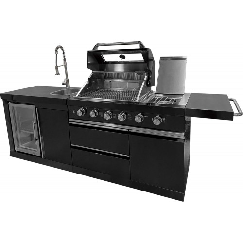 Dado que la cocina está hecha completamente de acero con recubrimiento en polvo, la limpieza es fácil con agua jabonosa suave. En caso de suciedad más fuerte, se puede añadir un acero o metal .La cocina al aire libre está de moda, y no solo en la temporada cálida. Quien quiera hacer algo más que una barbacoa, sino preparar comidas enteras, necesita un equipo de alta calidad. Precisamente aquí entra en juego la cocina al aire libre 'Cambridge' en forma de arbusto y ofrece todo para una experiencia de cocina al aire libre exitosa. El corazón de la cocina al aire libre es una barbacoa con cuatro potentes quemadores y una parrilla infrarroja conmutable. La campana para barbacoa con termómetro y una ventana de gran tamaño te ayuda a controlar con precisión la acción de la barbacoa. Para todo tipo de platos la cocina al aire libre dispone de una olla lateral, un quemador trasero está diseñado para salsas. Además, la cocina para exteriores 'Cambridge' ofrece un fregadero con ducha flexible, una nevera compacta para alimentos y bebidas y varios cajones para ahorrar espacio.