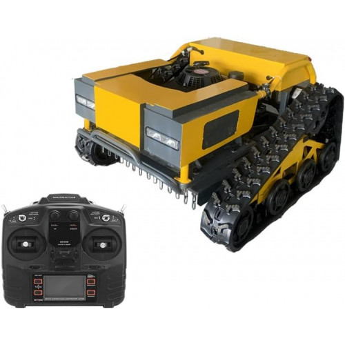 El cortacésped con control remoto está diseñado para mayor eficiencia y comodidad, con un robusto motor 4-S de un solo cilindro de cuatro tiempos (OHV) con una potencia de salida de 4,2 kW a 3600 rpm. Sus dimensiones son de 1000 x 820 x 600 mm, por lo que es adecuado para varios tamaños de césped. Equipado con una batería de 24 V/12 Ah y motores duales de 24 V/500 W, garantiza un rendimiento fiable. El modo de conducción sobre orugas y la dirección diferencial proporcionan una excelente maniobrabilidad. Ajusta la altura del rastrojo de 0 a 150 mm y disfruta de un rango de corte de 550 mm. Con una distancia de control remoto de hasta 200 metros, puedes operarlo cómodamente desde una distancia. El modo de resistencia híbrido de gasolina y eléctrico y una capacidad del tanque de combustible de 1,5 L ofrecen un tiempo de funcionamiento prolongado. El arranque es fácil con la función de inicio de un botón. El paquete incluye 1 host y 1 mando a distancia, listo para tus necesidades de cuidado del césped.