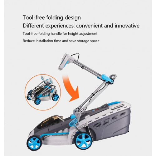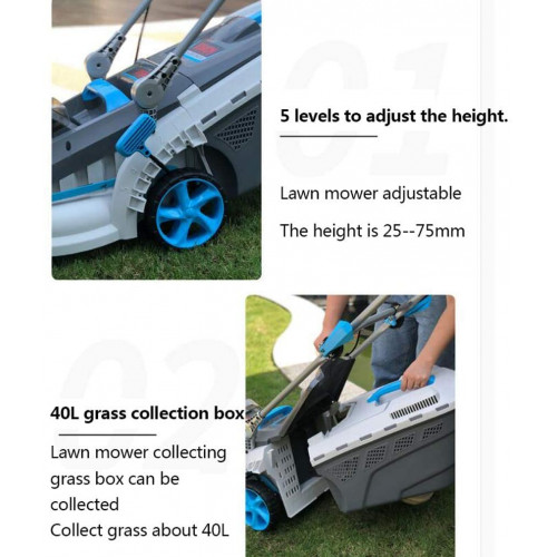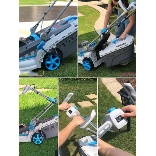 FDGSD Cortacésped eléctrico inalámbrico, Ancho de Corte de 40 cm, Altura de Corte Ajustable, con batería y Cargador, Manillar Plegable, Control fácil, Caja de césped de 40 litros, batería de Litio
