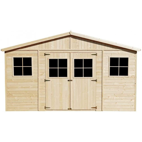 TIMBELA Casetas de Jardin M331 - Casa de Madera para Jardin - Caseta Jardin 418x320cm/12m2 - Cobertizo Jardin Exterior Natural - Taller de Jardín - Bicicleta, Almacenamiento de Herramientas
