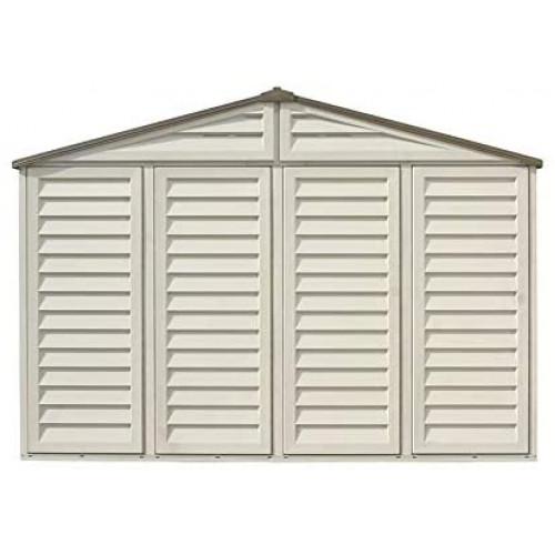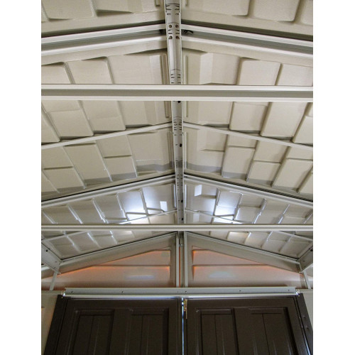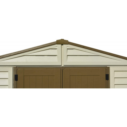 Las casetas de PVC WoodBridge Plus de Duramax son de paneles de PVC extrusionados lo que nos garantiza la homogeneidad del panel en toda su extensión, el PVC tiene como atributo mayor durabilidad y una reacción autoextinguidle ante la acción del fuego, gracias al encapsulamiento se le aporta una protección frente a los rayos ultravioletas, atractivo diseño y un acabado en color beige y marrón. El panelado se hace sobre estructura de acero galvanizado proporcionando una gran resistencia a la caseta. De gran tamaño más de 8m2. Incluye doble ventilación para reducir la condensación interior , claraboya para entrada de luz. Perfecta para almacenar mobiliario de jardín, maquinaria incluso hasta bicicletas o motos por su gran tamaño.