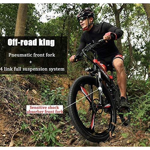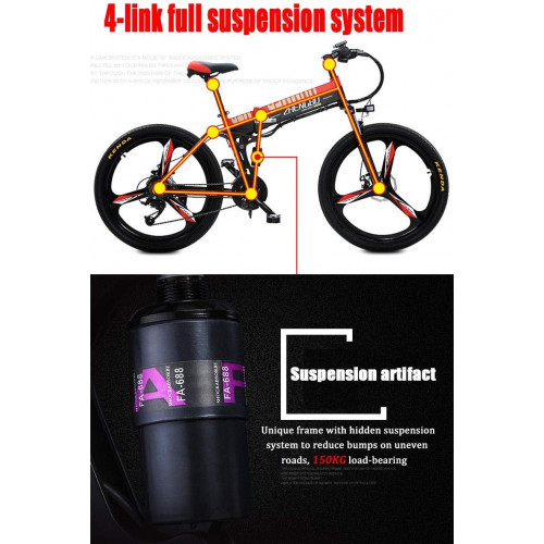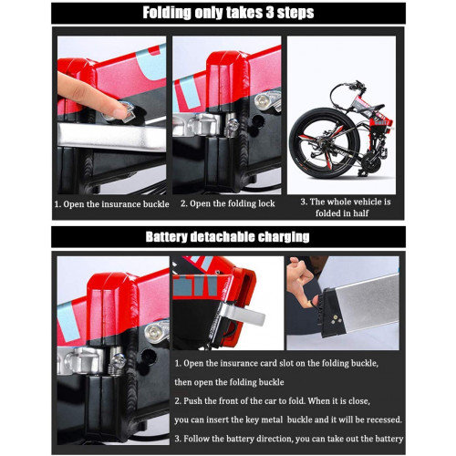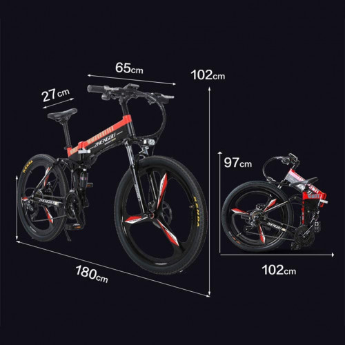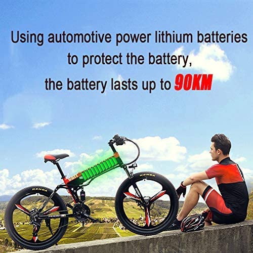 Bicicleta * 1L.HPT Bicicleta de montaña eléctrica Bicicleta Plegable para Hombre 26 Pulgadas 27 48V10Ah batería de Litio Bicicleta para Adultos Carga máxima 150 kg Resistencia 90 km Negro + Rojo