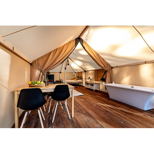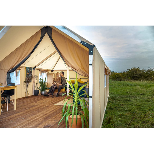 Glamping Tent 40 metros cuadrados con suelo de madera y marco de metal. No necesita base