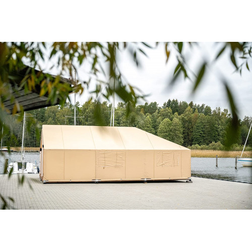 Nuestro producto está fabricado en Alemania y todos los detalles están hechos a mano por nuestro equipo. Este marco de metal de tamaño estándar (40 m2) tiene suelo de madera galvanizada, marcos de madera de pino, conectores, todos los tornillos, tela y 5 años de garantía. También ofrecemos manual del usuario y puedes montar la tienda en dos personas en 4-6 horas sin experiencia previa, y no es necesario deshacerse en invierno, la tienda puede permanecer durante todo el año. Para guardar una tienda que necesita solo 3 m2 y que se puede exterior, simplemente cubierta con película. Debajo del marco de metal hay 15 patas ajustables y esto significa que no necesitas ninguna base y que sea fácil obtener permiso. La diferencia de nivel grande puede ser de 1 metro.