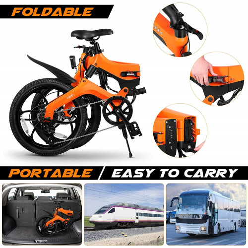 VORCOOL Bicicleta Eléctrica 250W Plegable Mini E- Bike Pedec 3 Modos Frenos Delanteros Y Traseros Bicicleta Híbrida de Ciudad Bicicleta (Naranja)