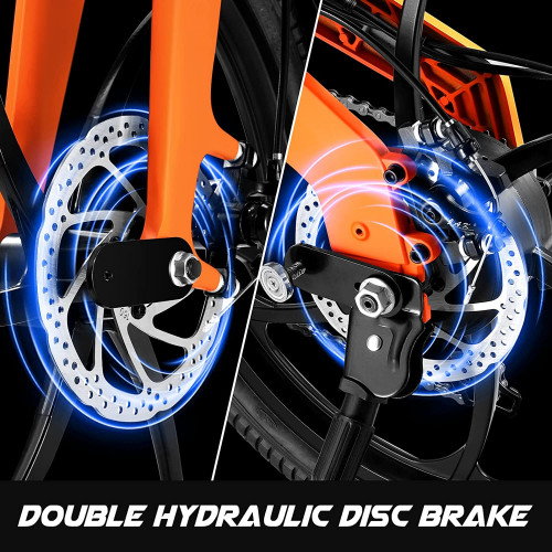 • En forma segura: e- bike ha tomado una nueva tecnología de los frenos de disco duales para garantizar una conducción más estable y segura y la horquilla delantera está hecha de acero al carbono de alta resistencia y embalada con comodidad superior, la rueda de aleación de magnesio de gran dureza es antideslizante y resistente a las cuchillas.