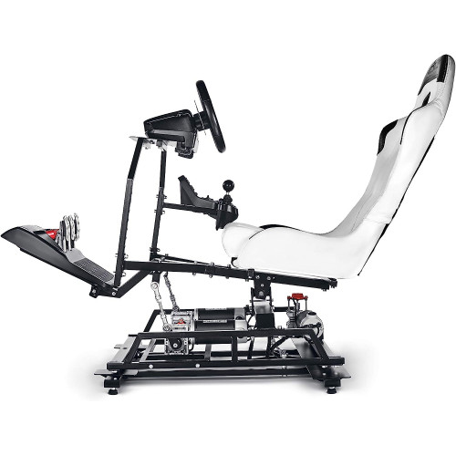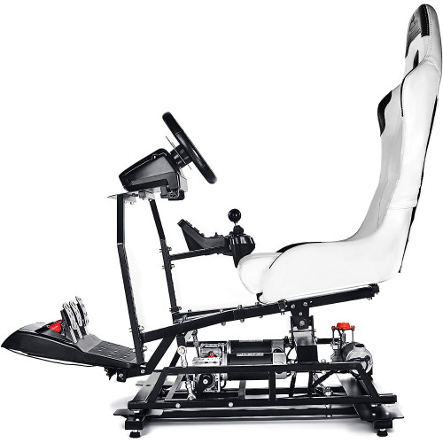 • A diferencia de la competencia, no solo se mueve el asiento, sino toda la plataforma: incluido :volante, joystick, pedal, sillon viene completo como sale en la foto.