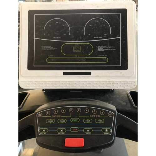 Características Técnicas: Pantalla LED Porta botellas: Sí Motor elevación: voltaje: 220V-240V, velocidad: 1475r / min, frecuencia: 50HZ, potencia de salida: 60W, clase de aislamiento: B, carga máxima: 5.5KN Motor principal: Potencia nominal 4.0HP (2.2KW); Potencia máxima: 7HP Programa fijo (TFT): velocidad, inclinación, tiempo, distancia, calorias, pulso El programa predeterminado (TFT): P1 (manual) P2 (arriba y abajo) P3 (ascenso) P4 (intermitente) P5 (perder peso) P6 (montaña) P7 (reducción de grasa) Programa Fijo (LED): Velocidad, Inclinación, Tiempo, Dis, Cal, Pulso El programa predeterminado (LED): P1, P2, P3, P4, P5,01,02, (01,02 es definido por el usuario) Idioma: inglés Wifi: TFT disponible Rango de frecuencia cardíaca: 50-256 (veces / min) Rango de calorías: 0-999 (kcal) Rango de distancia: 0.00-99.9 (km) Rango de tiempo: 0: 00-99: 59 Rango de velocidad: 1.0-20.0 (km / h) Rango de inclinación: 0-15 % Peso máximo del usuario: 180kg Dimensiones y peso: Largo: 2250 mm Ancho: 1010 mm Alto: 1830 mm Superficie de carrera:1660 * 600mm Banda: 590mm Peso neto: 258 kg Peso embalada: 350 Kg.
