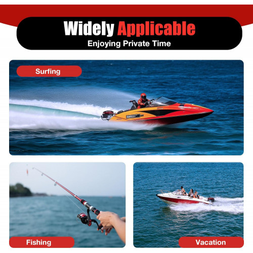 • RÁPIDO Y POTENTE: El motor de 4 tiempos con una potencia máxima de 5,1 kW, 7 hp y una velocidad máxima de 6000 rpm le proporciona una velocidad inigualable. El diseño aerodinámico de la hélice de 3 palas de 6,3'' reduce la resistencia al agua y ofrece más potencia durante el funcionamiento. .