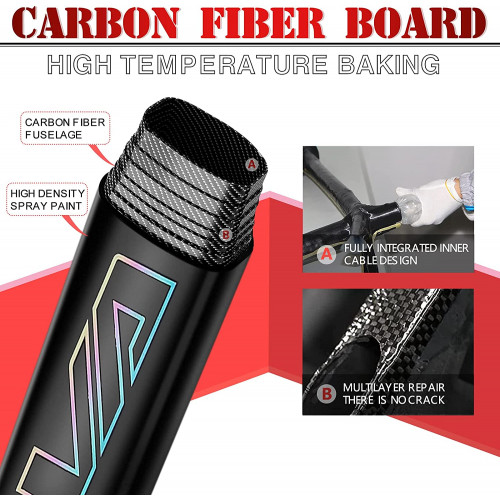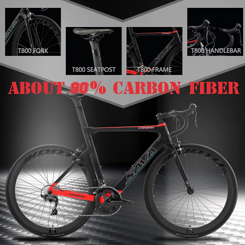 - Cuadro, horquilla, manillar, juego de ruedas y tija de sillín de fibra de carbono TORAY T800 - Es una bicicleta de carretera de carbono ligera y rígida de 17,6 libras.