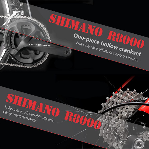 - con Nuevo SHIMANO Ultegra R8000 2 * 11 velocidades con palanca de cambios, desviador delantero, desviador trasero, freno, juego de bielas y piñón libre.