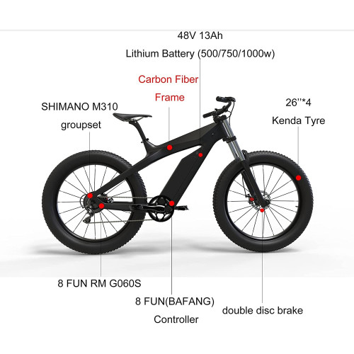 La bicicleta eléctrica combina perfectamente la adaptabilidad incomparable a las condiciones de ciclismo complejas con una comodidad excepcional. El marco ligero de la fibra de carbono aumenta la fuerza mientras lo hace lo más ligero posible. La capacidad de la batería y la potencia del motor 750 / 1000W, se pueden garantizar una gama individual de 50 millas y se puede garantizar una capacidad confiable. Los neumáticos de las grasas de 26 pulgadas proporcionan un tremendo agarre y estabilidad mecánica. No es más dudas de que es la bicicleta eléctrica más profesional y rentable en todo terreno en el mundo.