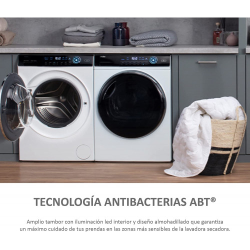 Haier I-Pro Series 7 HWD120-B14979 - Lavadora secadora, 12KG + 8KG de secado, Función Vapor I-Refresh y Antimanchas, Motor Direct Motion, Tecnología Antibacterias, 1400 RPM, 14 Programas, Clase AE [Clase de eficiencia energética A]