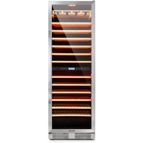 Klarstein Vinovilla Grande - Vinoteca, Nevera vinos, 425 L, 165 botellas, Control táctil, Temperatura ajustable, Soporte para copas, 13 estantes de madera, 2 zonas, Nevera para vinos, Plateado [Clase de eficiencia energética G]