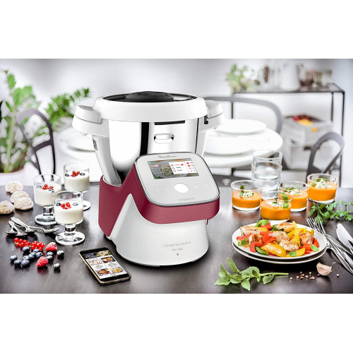 - Robot conectado por WiFi que permite crear tus recetarios y puedes acceder a ellos a través de la pantalla táctil de 4.3 pulgadas de tu i-Companion Touch XL; mediante la App Companion de Moulinex puedes organizar tus menús fácilmente